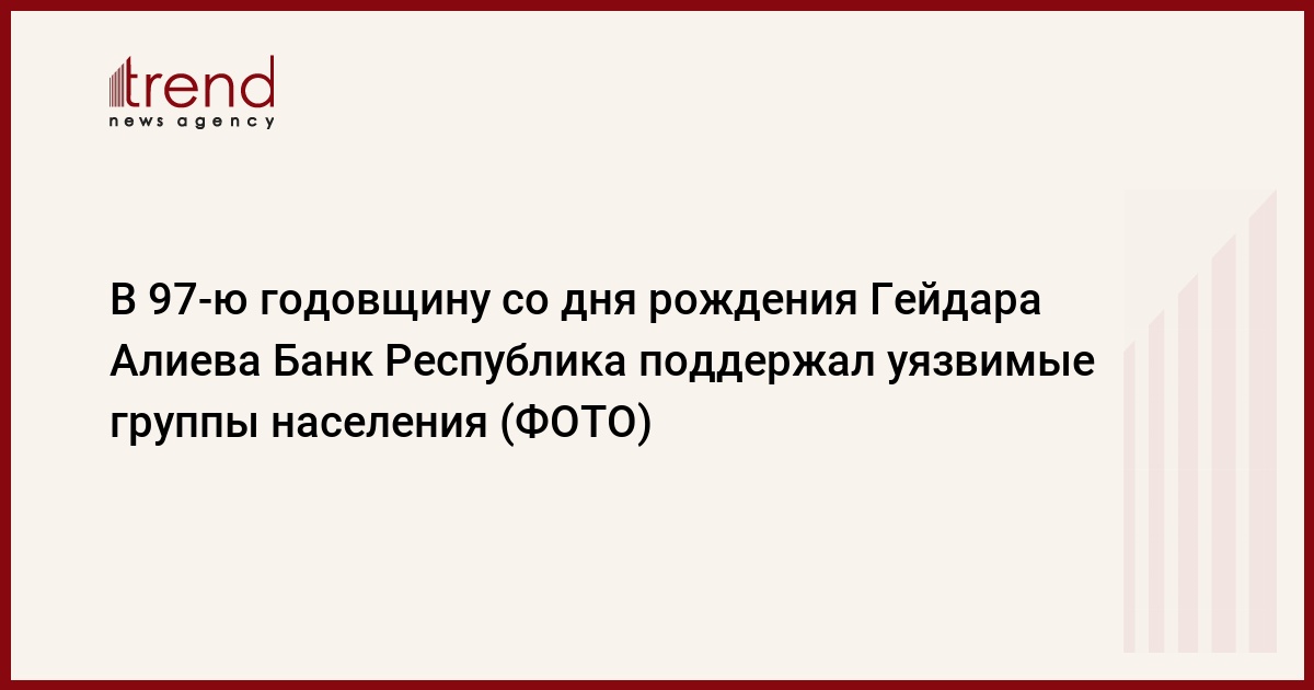 Банк, в 97-ю годовщину со дня рождения общенационального лидера Гейдара Алиева, продолжил свою деятельность по безвозмездной передаче материалов, оборудования и другого имущества безработным, малообеспеченным семьям и вынужденным переселенцам в различных регионах страны.