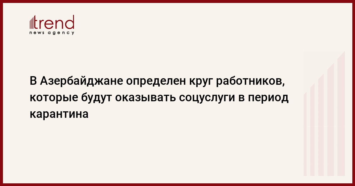 БАКУ /Trend/ - Кабинет министров Азербайджана принял постановление об определении круга работников, участвующих в оказании социальных услуг в период особого режима карантина, и срока выплаты надбавок.