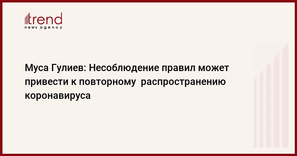 БАКУ/Trend/ - Снятие ряда ограничений в рамках карантинного режима в Азербайджане не должны расслаблять людей. Соответствующие правила должны обязательно соблюдаться, сказал в четверг Trend председатель парламентского комитета по труду и социальной политике Муса Гулиев.