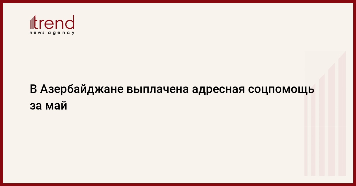 БАКУ /Trend/ - Министерство труда и социальной защиты населения осуществило выплату адресной государственной соцпомощи за май, сообщает в четверг Trend со ссылкой на ведомство.