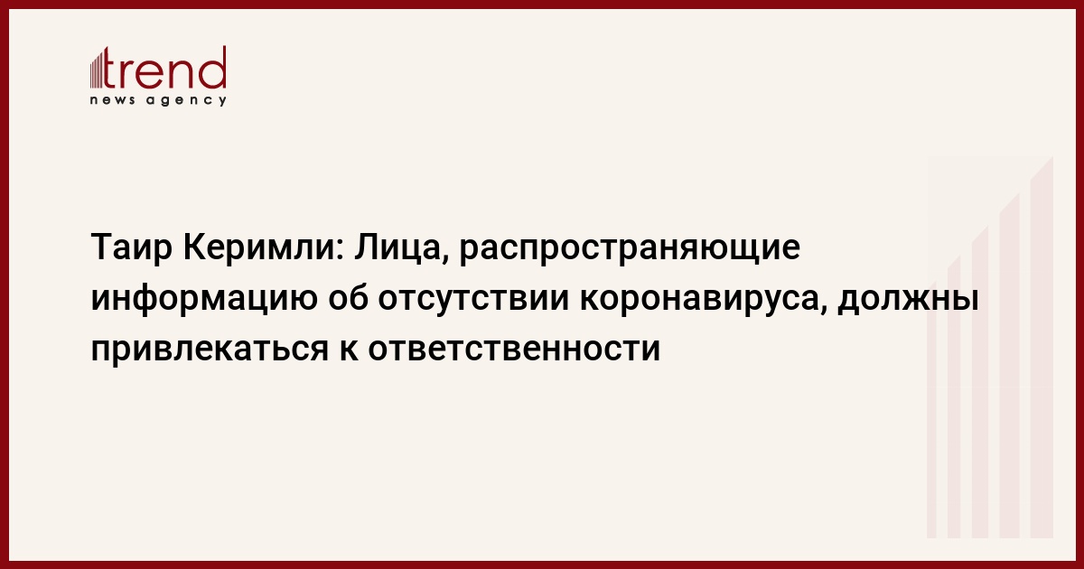 БАКУ/Trend/ - Лица, распространяющие информацию об отсутствии коронавируса, должны привлекаться к ответственности, так как подобные лживые заявления среди населения создают угрозу возникновения второй волны инфицирования в Азербайджане, сказал в субботу Trend депутат Милли Меджлиса (парламента) Таир Керимли.