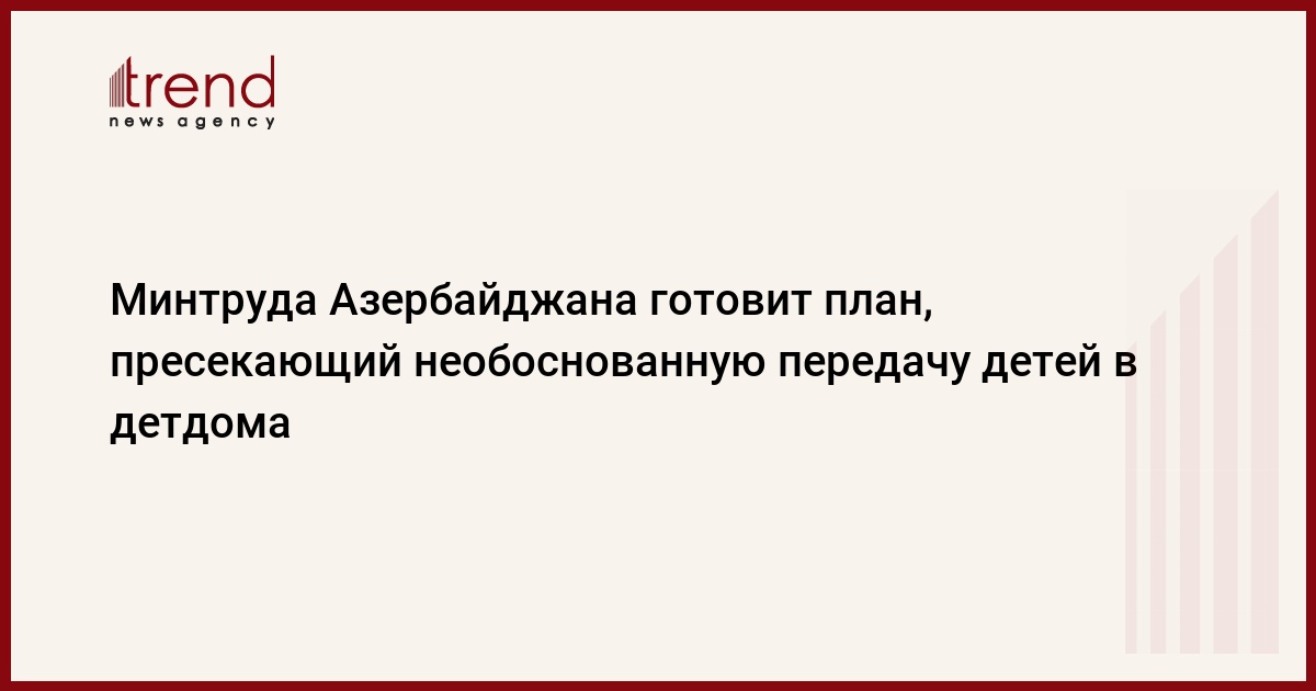 БАКУ/Trend/ - Минтруда и социальной защиты населения подготовит «План развития семьи» для пресечения необоснованной передачи детей в государственные детские дома, сообщает в среду Trend со ссылкой на министерство.