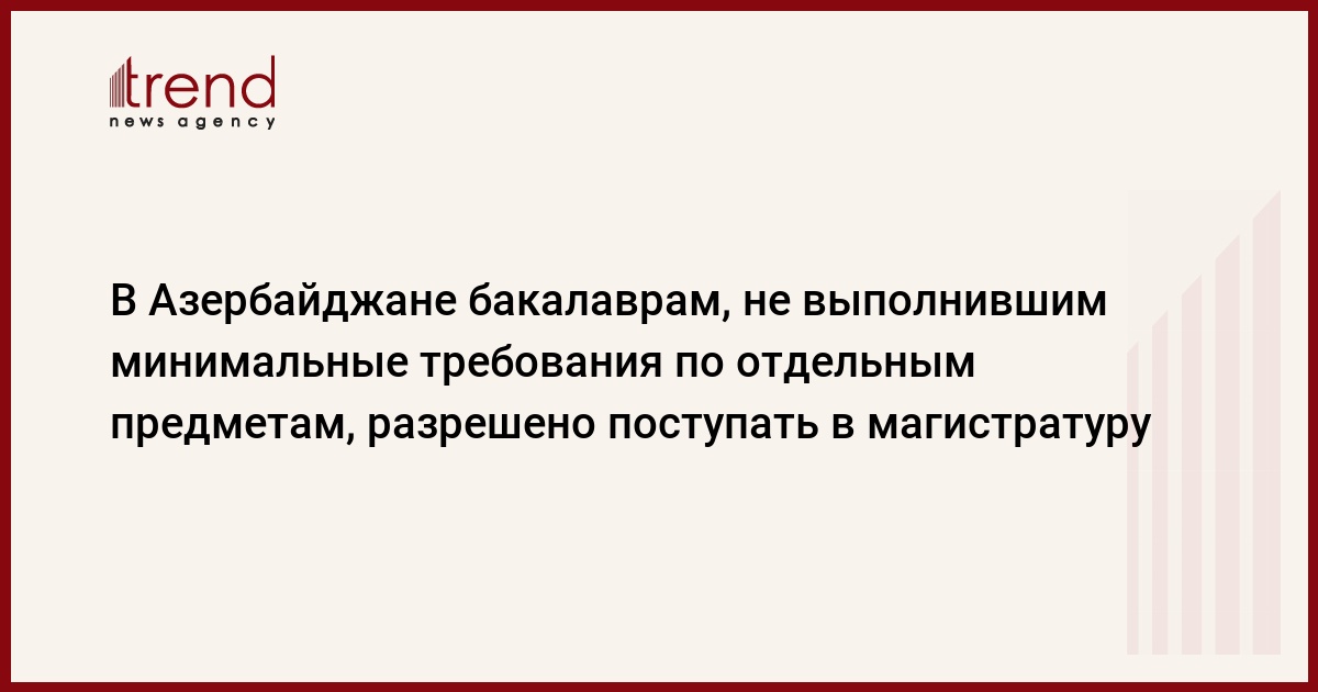 БАКУ/Trend/ - В этом году бакалаврам, набравшим минимальный балл в приемных экзаменах в магистратуру, но не сумевшим выполнить минимальные требования по отдельным предметам, разрешено участвовать в конкурсе по выбору специализации, сообщает в понедельник Trend со ссылкой на Государственный экзаменационный центр (ГЭЦ).