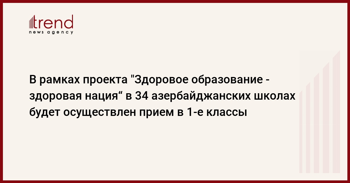 Как сообщили во вторник Trend в министерстве, согласно документу, в следующем учебном году будет осуществлен прием в 49 первых классов 34 общеобразовательных учреждений. Во всех таких учреждениях, где внедрены технологии здорового образования, будут организованы группы дошкольной подготовки, в которые также будет проведен прием.