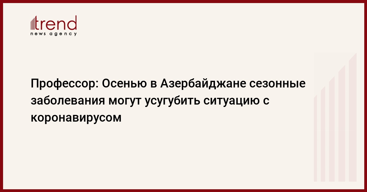 БАКУ/Trend/ - Если летом не будут соблюдаться правила, введенные для предотвращения распространения COVİD-19, то в сентябре-октябре в связи с появлением сезонных заболеваний ситуация может еще более обостриться, сказал в пятницу Trend профессор, доктор медицинских наук Адиль Аллахвердиев.