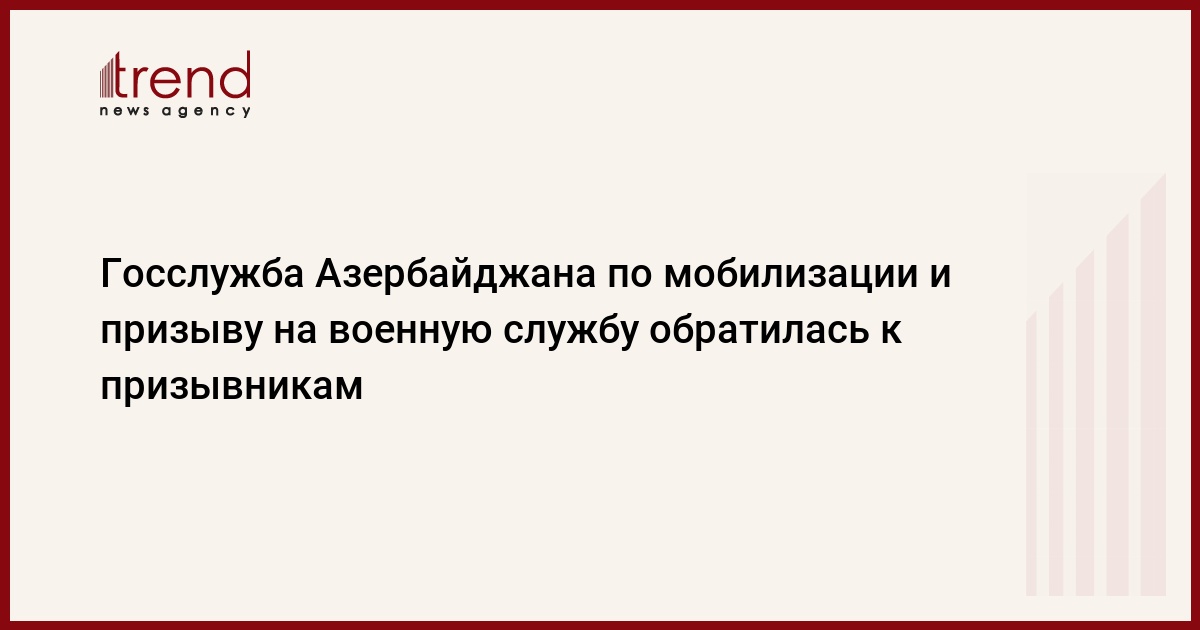 БАКУ /Trend/ - Госслужба Азербайджана по мобилизации и призыву на военную службу обратилась к призывникам, сообщает во вторник Trend.