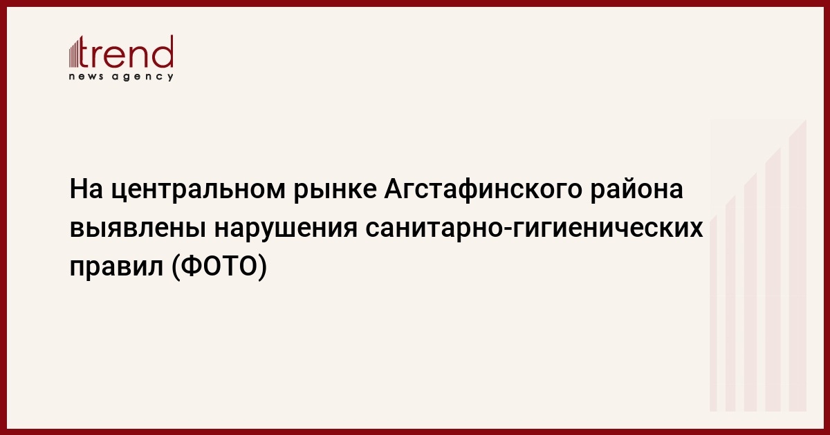 БАКУ /Trend/ - В ходе мониторинга, проведенном на центральном рынке и в объектах общепита в Агстафинском районе, Агентство пищевой безопасности выявило ряд нарушений, сообщает в пятницу Trend со ссылкой на Агентство.