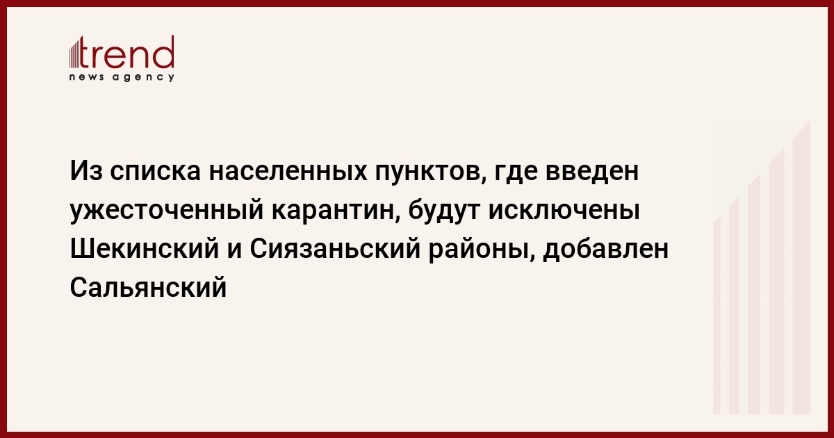 БАКУ /Trend/ - С пятого августа в Сальянском районе будет введен ужесточенный особый карантинный режим.