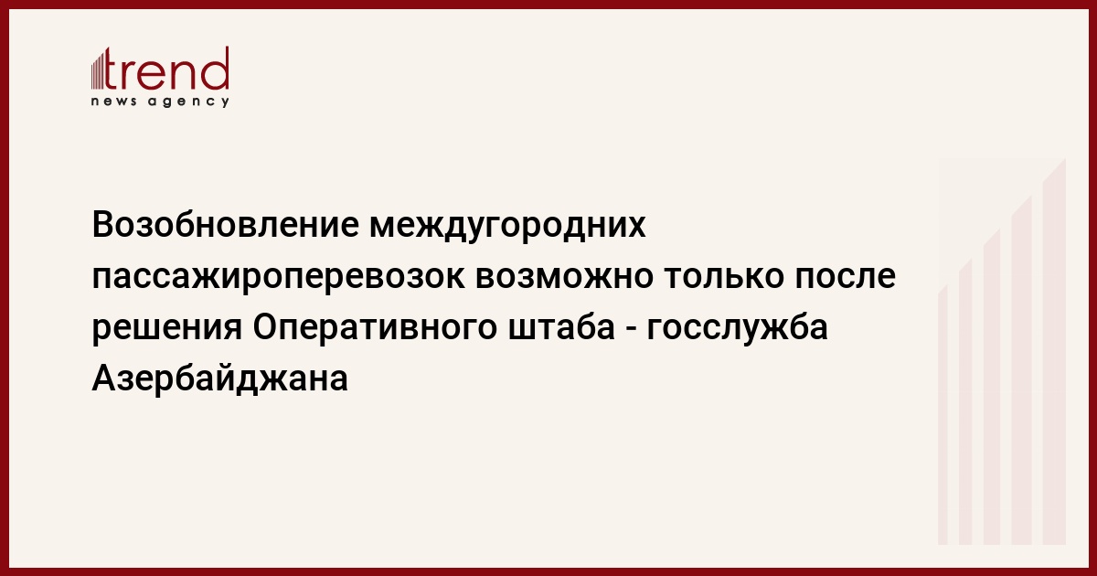 БАКУ /Trend/ - О возобновлении междугородных и межрайонных пассажирских перевозок можно будет говорить только после соответствующего решения Оперативного штаба при Кабинете министров.