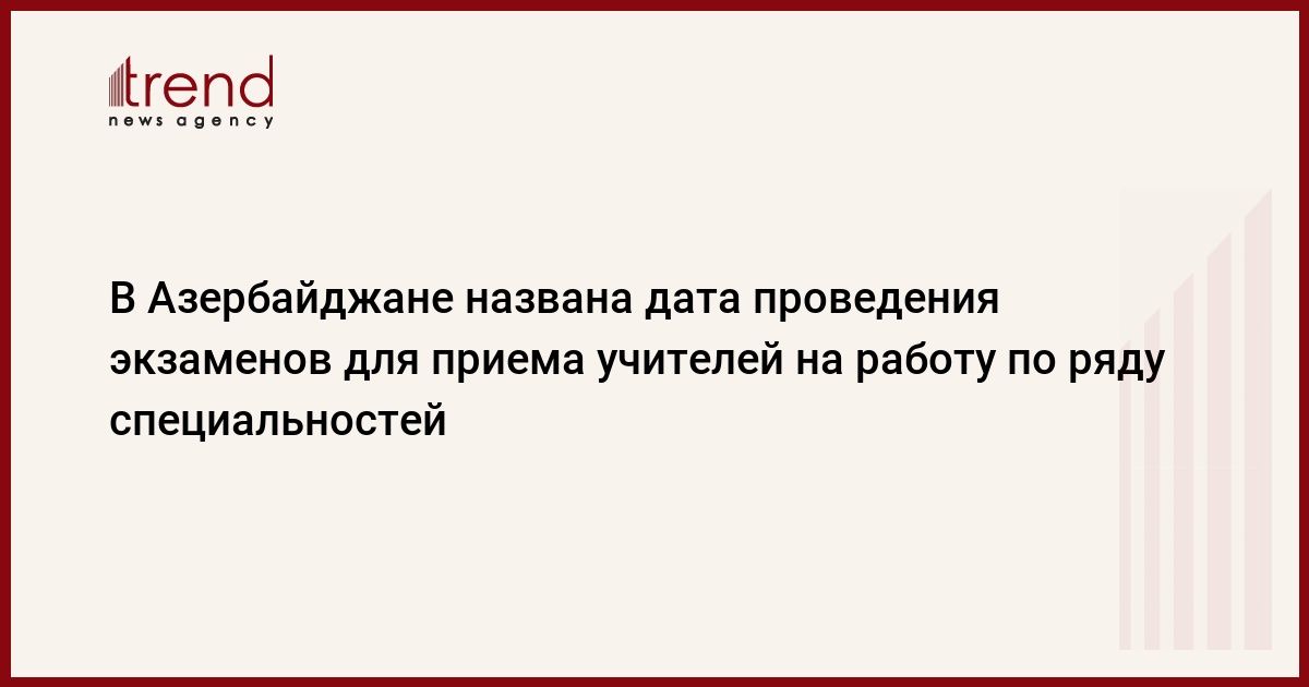Как сообщили в пятницу Trend в министерстве образования, в эти дни будут проведены тестовые экзамены по специальностям "азербайджанский язык", "музыка", "физкультура" и "учитель начальных классов".