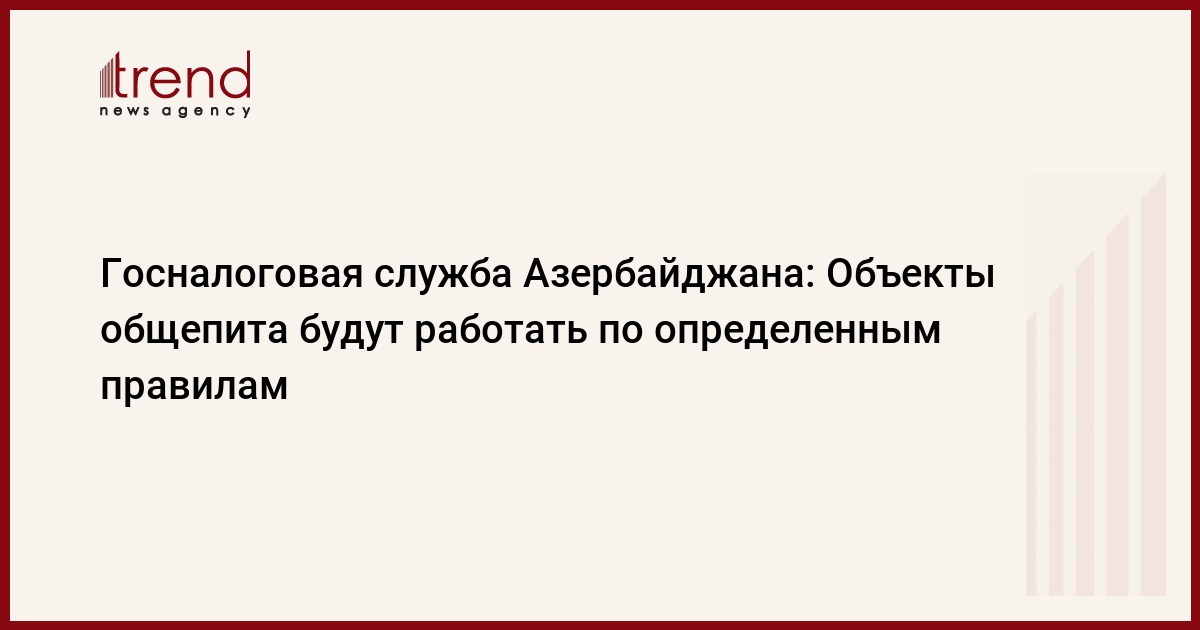 БАКУ /Trend/ - Открытие объектов общественного питания будет осуществляться в рамках определенных правил, сказала на сегодняшнем брифинге Оперативного штаба при Кабинете министров заместитель председателя Государственной налоговой службы при Министерстве экономики Азербайджана Самира Мусаева, сообщает в субботу Trend.