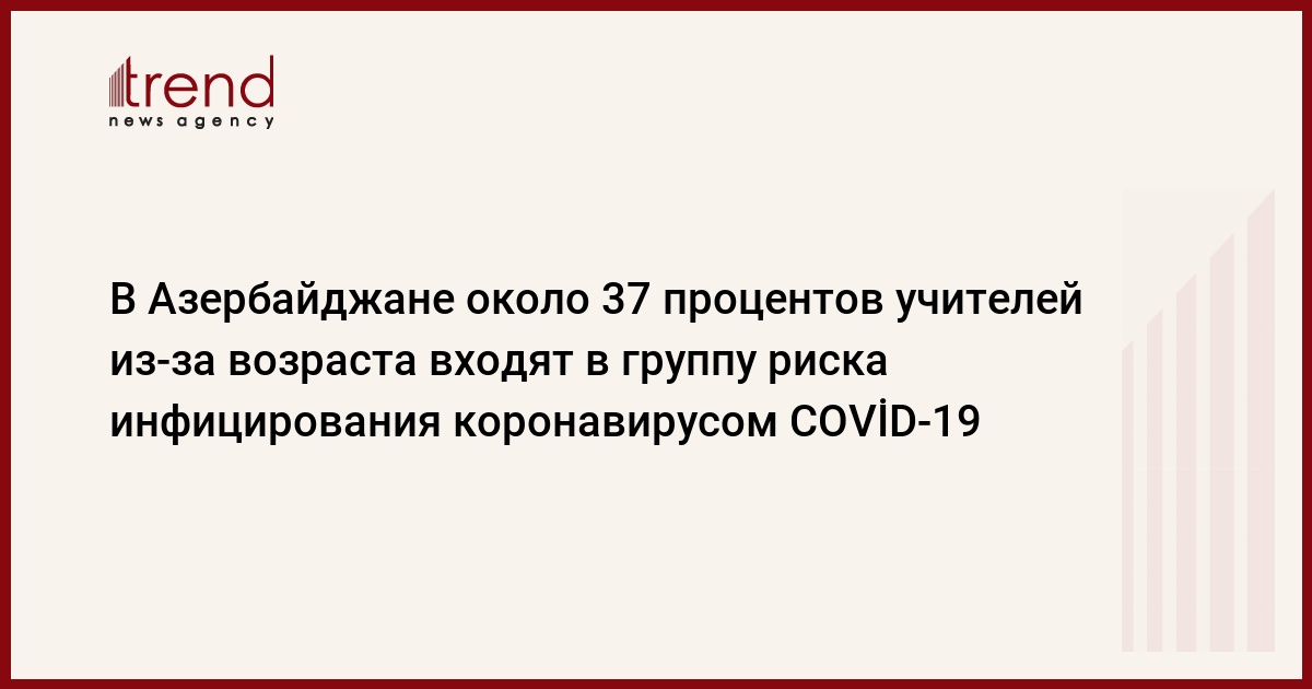 БАКУ /Trend/ - В Азербайджане около 37 процентов учителей из-за возраста входят в группу риска инфицирования коронавирусом COVİD-19.