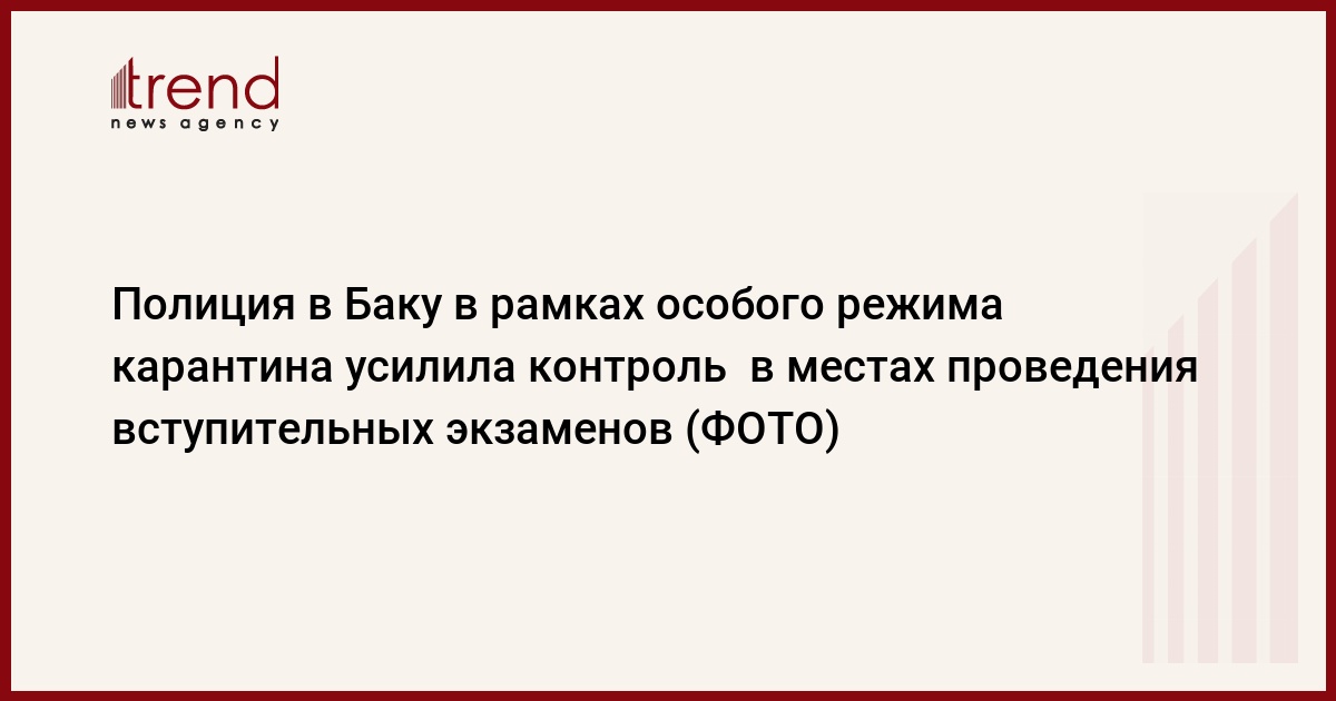 Как сообщили в пятницу Trend в Главном управлении полиции Баку, для предотвращения массового скопление людей, с целью сокращения контактов в местах проведения экзаменов контролировалось соблюдение социальной дистанции между участниками и использование медицинских масок.