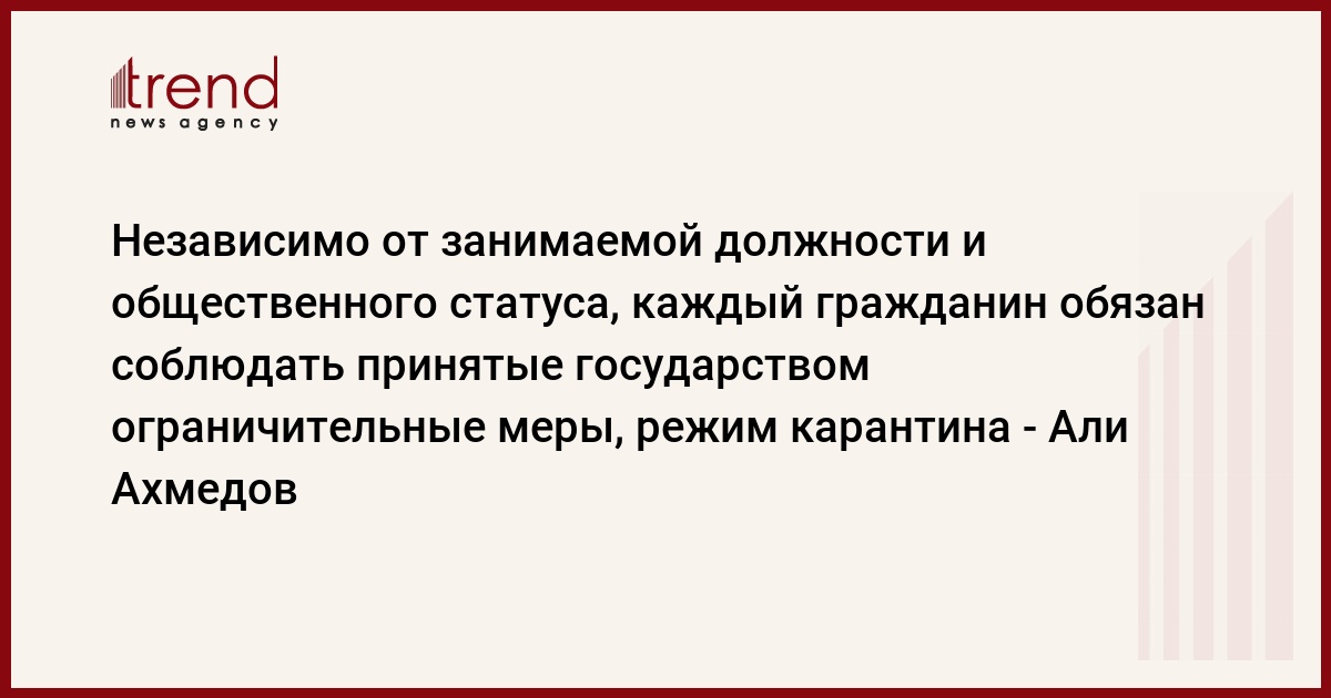 По его словам, соблюдение принятых государством для защиты здоровья населения ограничительных мер, режима карантина, должно быть долгом каждого гражданина, независимо от его положения и общественного статуса.