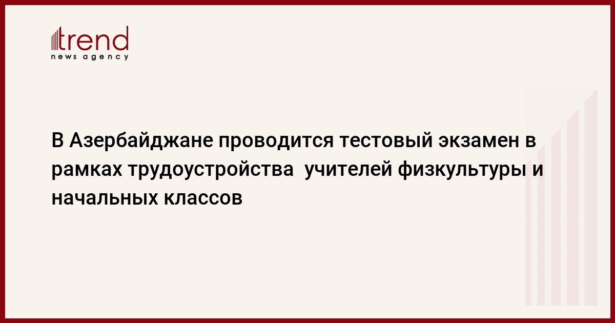 БАКУ /Trend/ - Сегодня проводится тестовый экзамен в рамках конкурса по трудоустройству учителей физкультуры и начальных классов, сообщает в понедельник Trend со ссылкой на министерство образования.