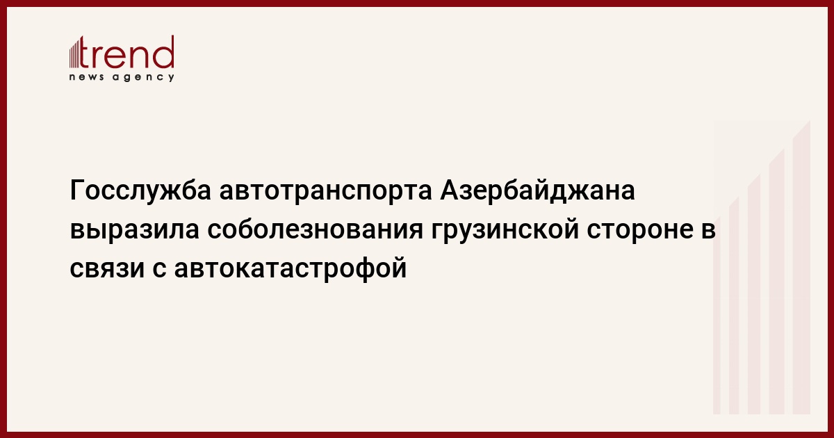 БАКУ /Trend/ - Государственная служба автомобильного транспорта при министерстве транспорта, связи и высоких технологий Азербайджана выразила соболезнования Грузии в связи с ДТП, повлекшим собой гибель пассажиров, передает в понедельник Trend со ссылкой на Госслужбу.