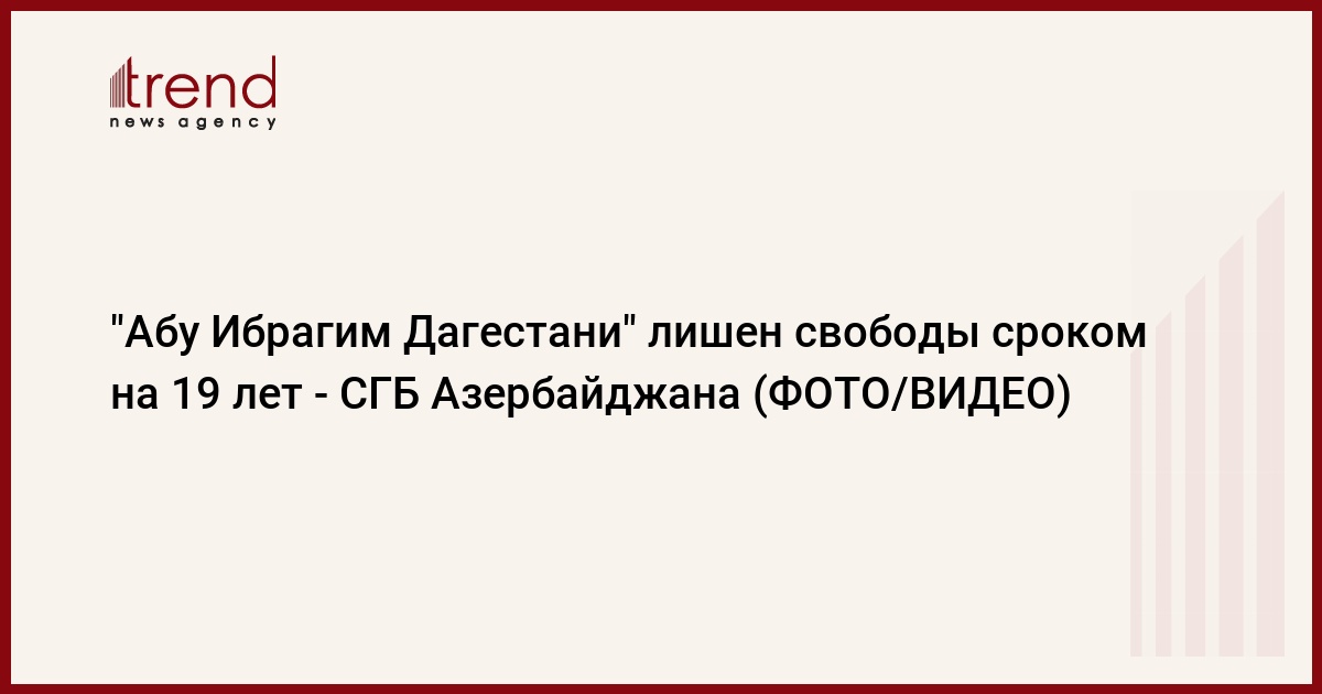 Как передает в субботу Trend со ссылкой на сайт Службы государственной безопасности (СГБ) Азербайджана, в результате интенсивных следственно-оперативных мероприятий, проведенных СГБ по факту вовлечения граждан Азербайджана под влиянием радикальных религиозных идей в террористические организации и в вооруженные конфликты за пределами страны, в октябре 2019 года в Пакистане был задержан и экстрадирован в Азербайджан Бахрам Гюлалиев, более известный как "Абу Ибрагим Дагестани", снабжавший взрывными устройствами международные террористические организации.