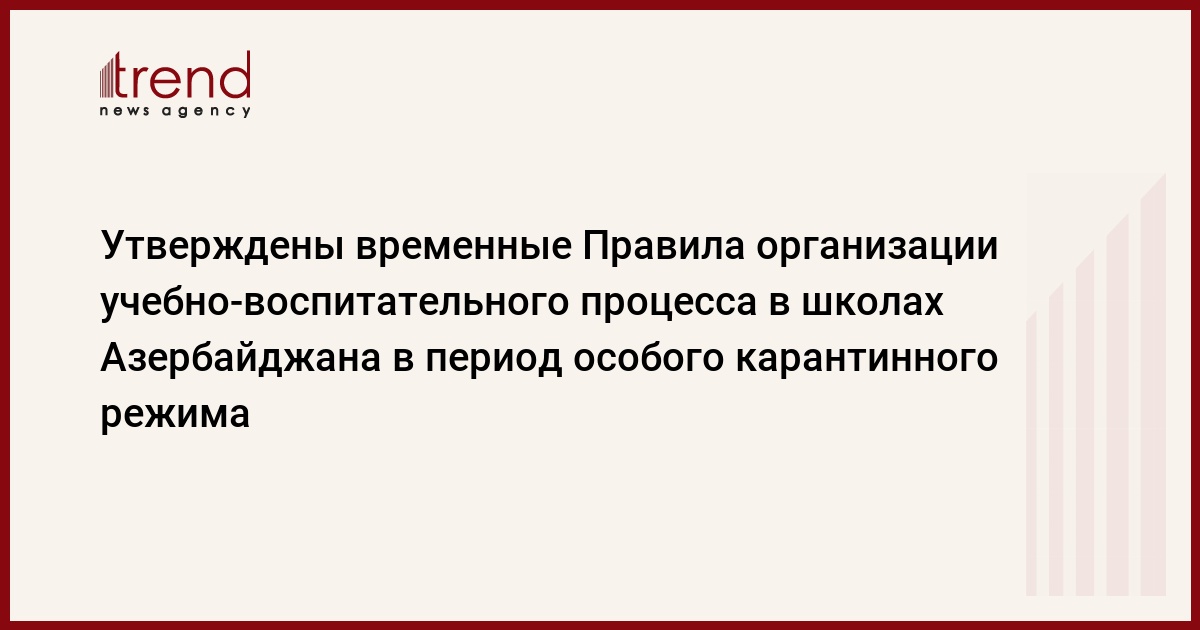 БАКУ /Trend/ - Кабинет министров Азербайджана утвердил «Временные правила организации учебно-воспитательного процесса в образовательных учреждениях, действующих в Азербайджанской Республике в период особого карантинного режима».