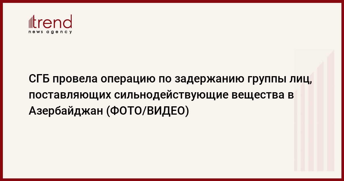 БАКУ /Trend/ - В результате оперативно-розыскной операции, осуществленной Службой государственной безопасности (СГБ), были пресечены незаконные действия граждан Азербайджана - Асадова Эмиля Кямран оглу, Гусейнова Шахина Миргусейн оглу, Бабаева Асифа Сияфеддин оглу, Гусейнова Рашада Шахин оглу, Мусаева Васифа Зульфугар оглу, Алиева Эмиля Хандадаш оглу и Намазова Заура Намаз оглу, подозреваемых в незаконном приобретении, хранении и транспортировке крупной партии сильнодействующих веществ, контрабандно и скрытно от таможно перевозящих из России в Азербайджан на постоянной основе, сообщает в среду Trend со ссылкой на СГБ.