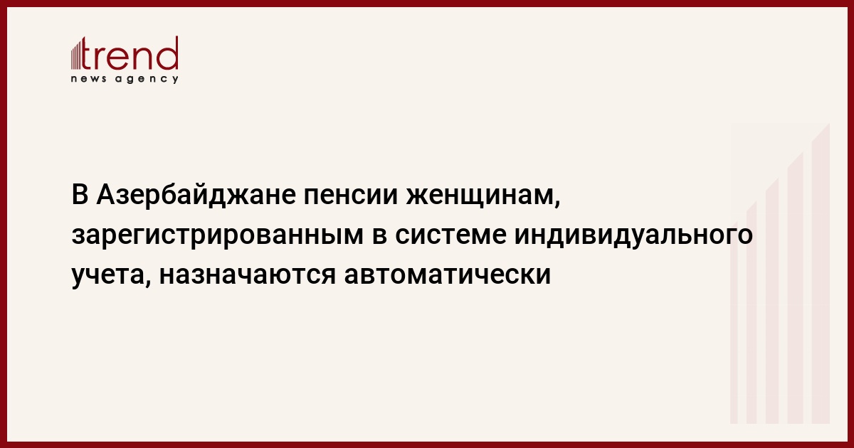 БАКУ /Trend/ - В Азербайджане назначение пенсий женщинам, зарегистрированным в системе индивидуального учета, осуществляется автоматически.