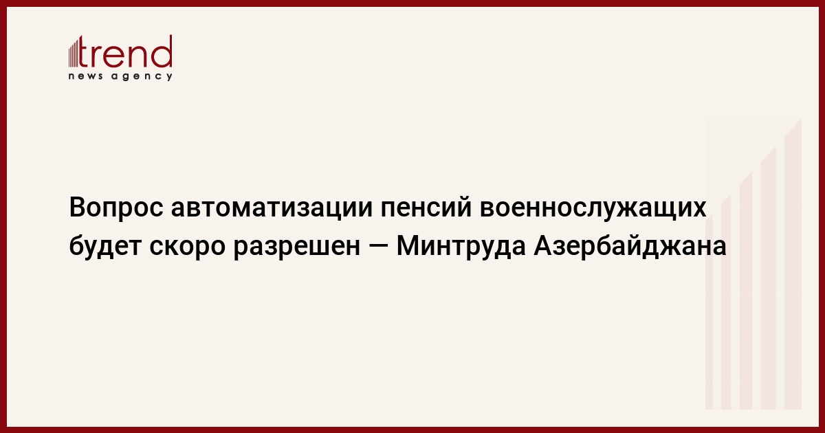 БАКУ /Trend/ - Вопрос автоматизации пенсий военнослужащих и за потерю кормильца будет скоро разрешен.
