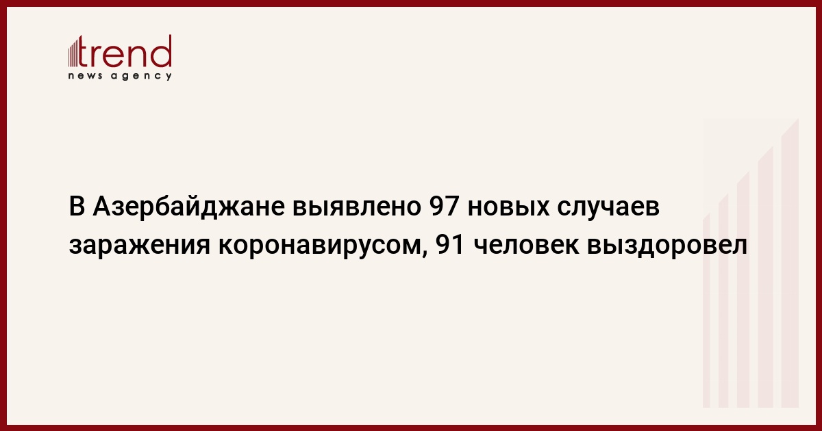 БАКУ /Trend/ - В Азербайджане выявлено еще 97 новых случаев заражения коронавирусом, 91 человек выздоровел, скончались два человека, сообщает в понедельник Trend со ссылкой на Оперативный штаб при Кабмине.