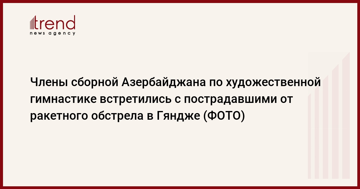 БАКУ /Trend/ - Члены сборной команды Азербайджана по художественной гимнастике побывали в городе Гянджа, который ранее подвергся ракетной атаке со стороны вооруженных сил Армении, сообщает Trend в среду со ссылкой на сайт Федерации гимнастики Азербайджана.