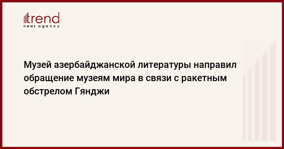 БАКУ /Trend/ - Национальный музей азербайджанской литературы им. Низами Гянджеви Национальной академии наук Азербайджана (НАНА) направил обращение почти 100 известным музеям мира, сообщает в среду Trend со ссылкой на музей.