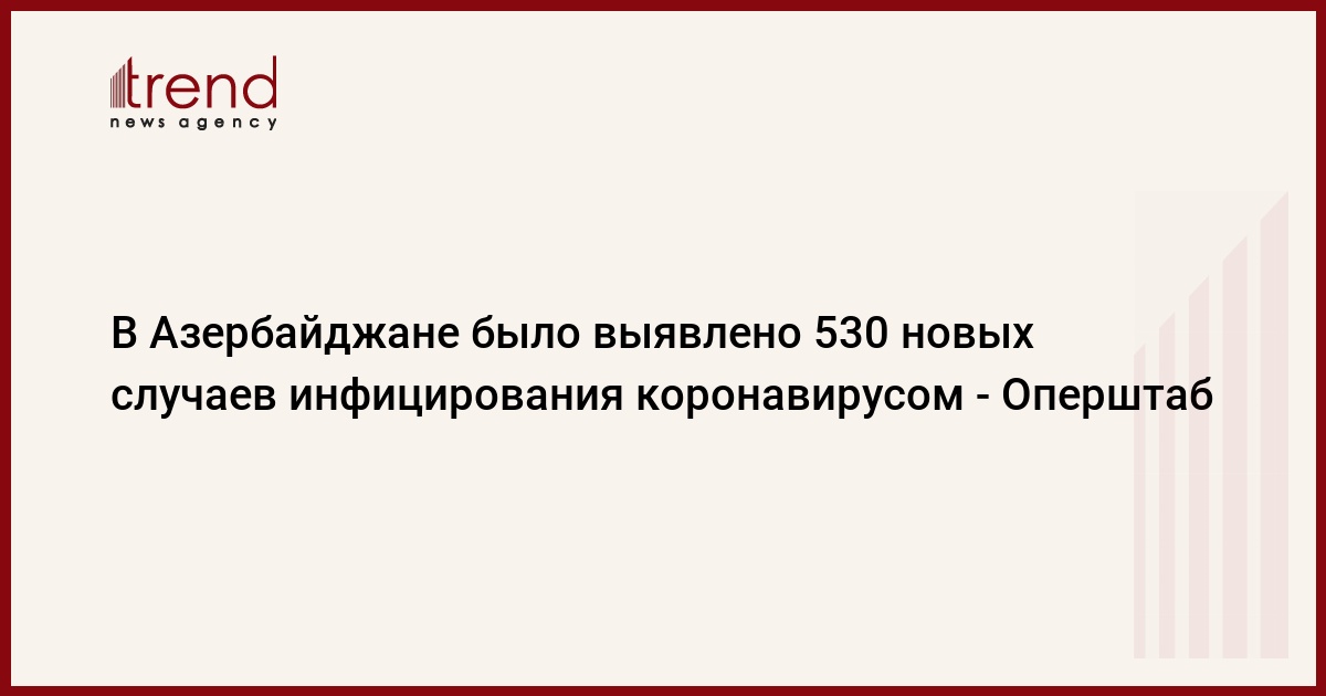 БАКУ /Trend/ - В Азербайджане было выявлено 530 новых случаев инфицирования коронавирусом, вылечился 101 человек, скончались три человека, сообщает в четверг Trend со ссылкой на Оперативный штаб при Кабинете министров.