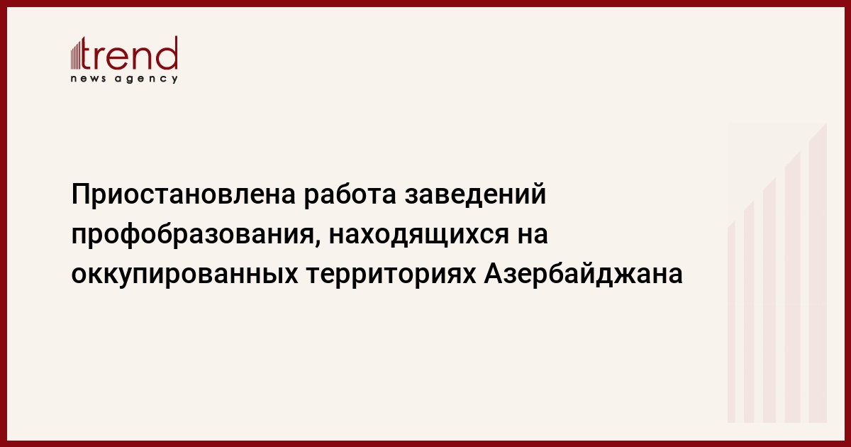БАКУ /Trend/ - В оккупированном Нагорном Карабахе и прилегающих районах полностью приостановлена работа 6 заведений профобразования – Губадлинская, Зангиланская, Шушинская профшколы и Агдамские профшколы №№ 1, 3 и 5, сообщает в пятницу Trend со ссылкой на Госагентство по профессиональному образованию.