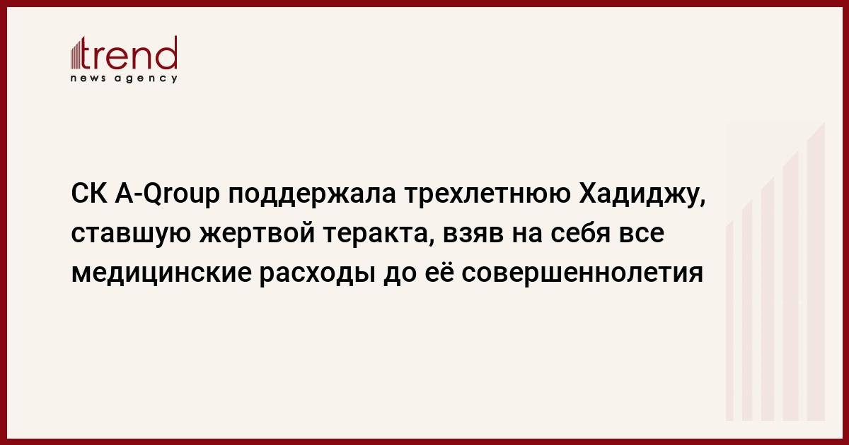 Повторившийся теракт в городе Гяндже уже 17-го октября лишил обоих родителей трехлетнюю Хадиджу. Посчитав своим долгом защитить физическое и психическое здоровье маленькой девочки, страховая компания A-Qroup обеспечила ее полисом медицинского страхования на сумму 15 000 манат в год до достижения ее совершеннолетия.