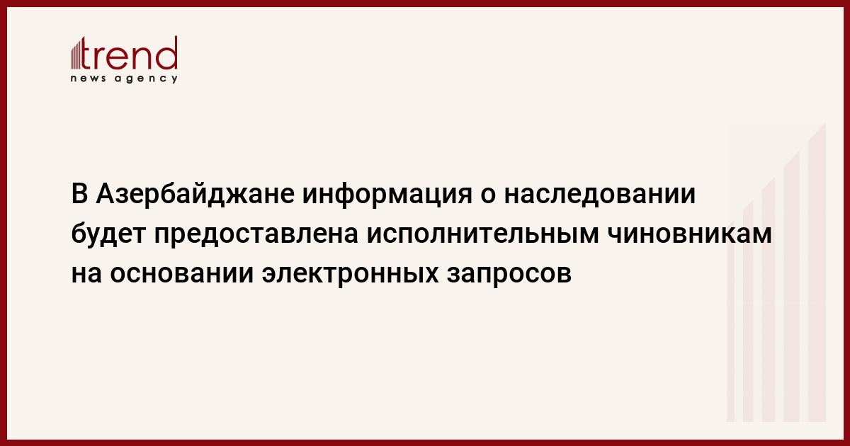 БАКУ /Trend/ - Информация о заведении дел в связи с наследством будет предоставляться исполнительным чиновникам в режиме реального времени через информационную систему "Электронный нотариус" на основании электронных запросов.
