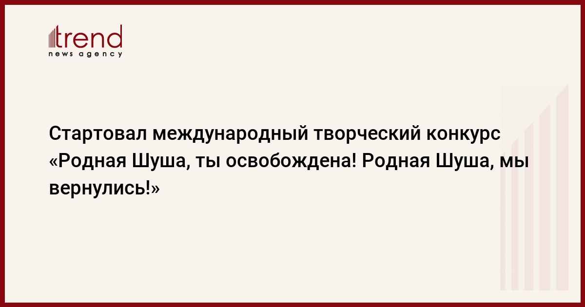 БАКУ /Trend/ - При организации Республиканского центра детско-юношеского развития министерства образования 13 ноября – 31 декабря будет проведен международный творческий конкурс «Родная Шуша, ты освобождена! Родная Шуша, мы вернулись!», сообщает в пятницу Trend со ссылкой на министерство.