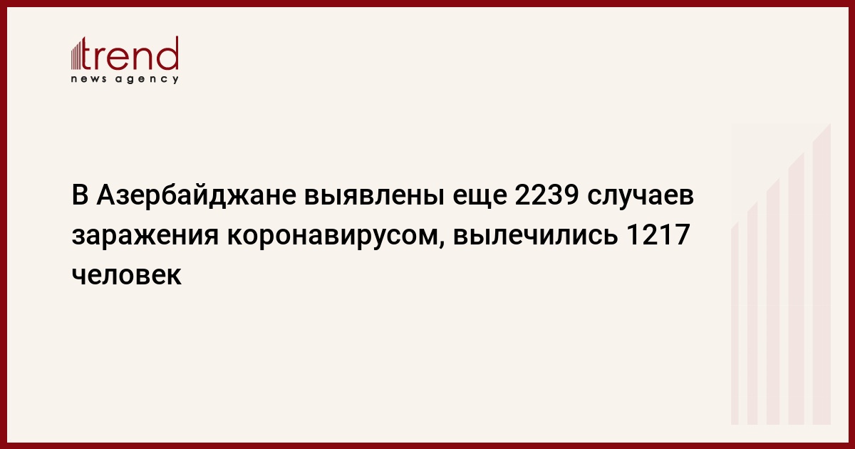 БАКУ /Trend/ - В Азербайджане выявлены еще 2239 случаев заражения коронавирусом (COVID-19), 1217 человек вылечились, 25 скончались, сообщает в среду Trend со ссылкой на Оперативный штаб при Кабмине.