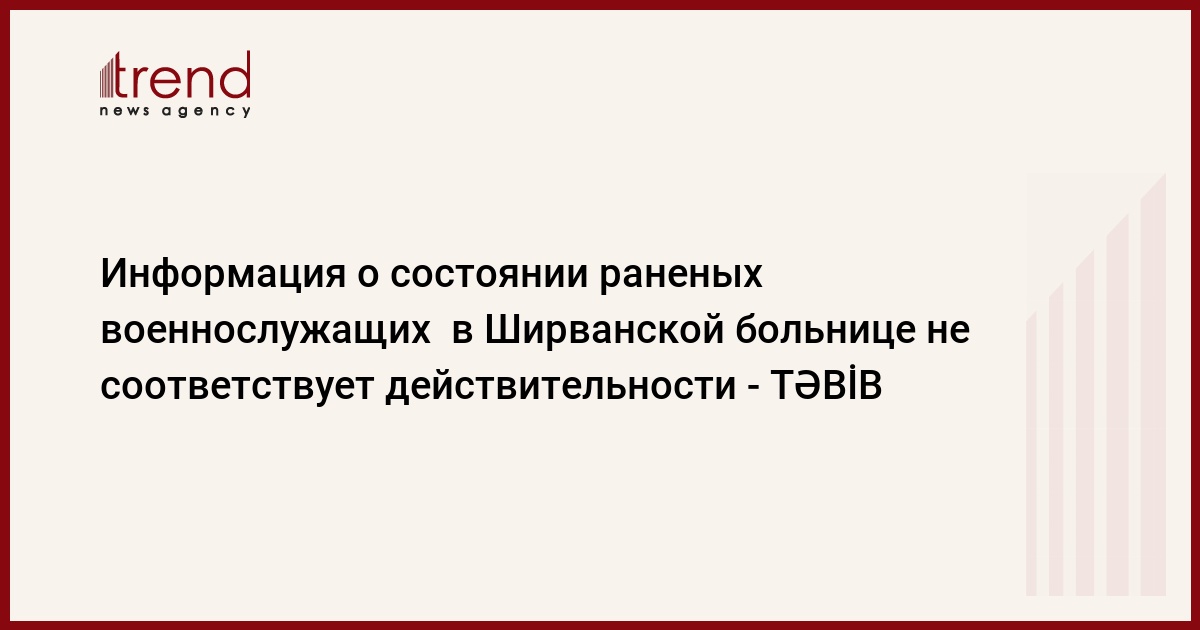 БАКУ /Trend/ - Распространившаяся в социальных сетях и некоторых СМИ информация о находящихся в Ширванской городской центральной больнице раненых военнослужащих, которые, как сообщается, находятся без сознания, не соответствует действительности.