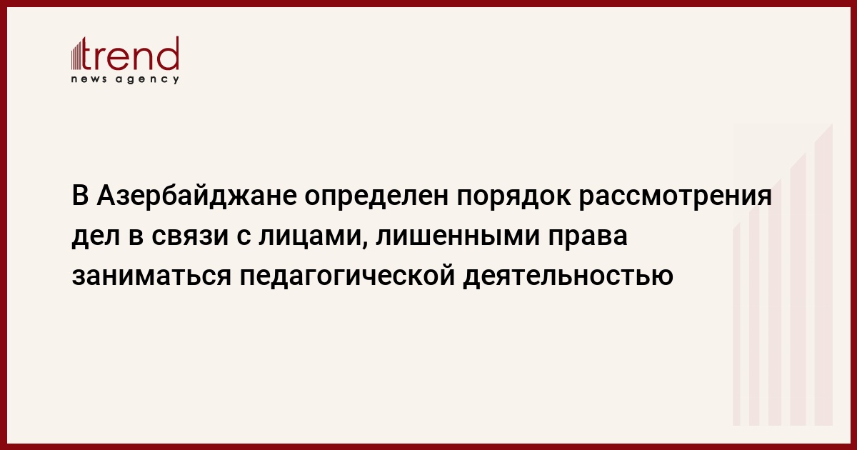 Согласно указу, дела об административных проступках, связанных с заключением трудового договора для осуществления педагогической деятельностью с лицами, которым законом запрещено заниматься педагогической деятельностью, будут рассматриваться начавшими административное делопроизводство по этим делам министерством труда и социальной защиты или министерством образования Азербайджана.