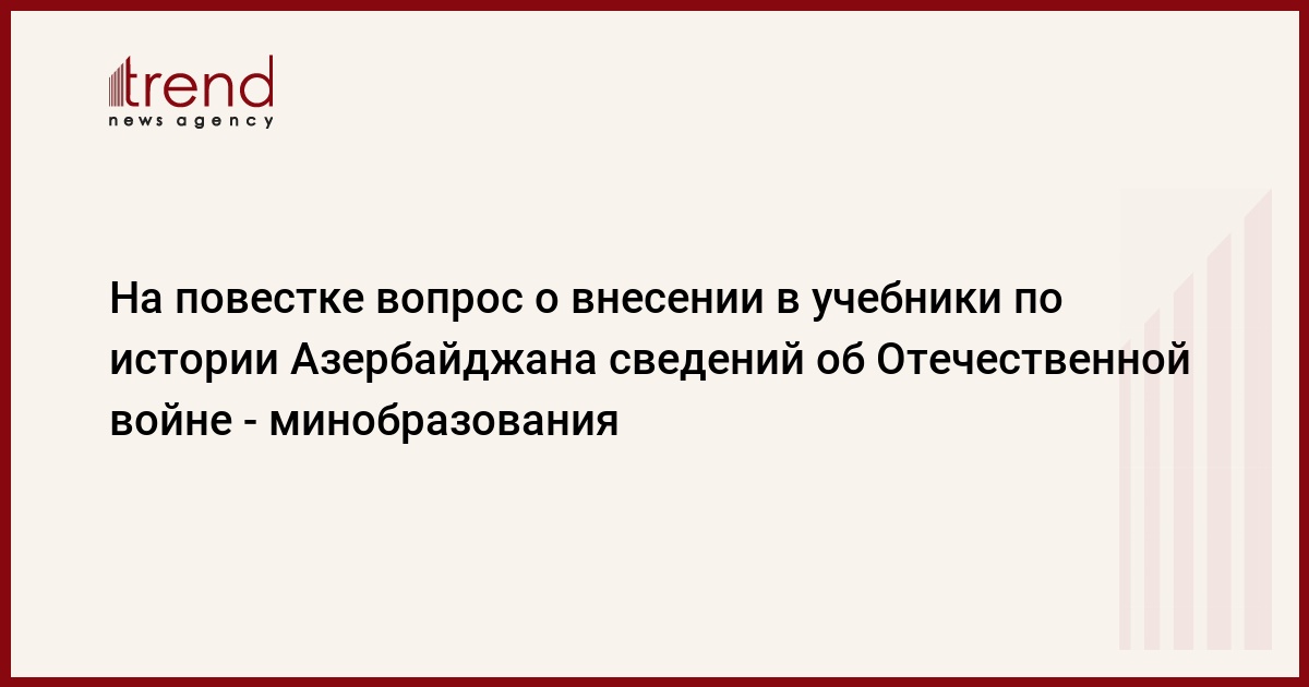 БАКУ /Trend/ - В связи с освобождением наших земель от армянской оккупации на повестке дня стоит вопрос о внесении изменений в учебники по истории Азербайджана.
