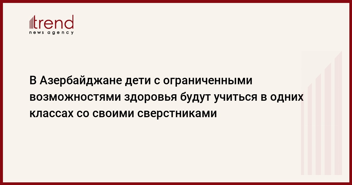 БАКУ /Trend/ - Все лица с ограниченными возможностями здоровья отныне будут учиться вместе со своими сверстниками, получать образование в тех же условиях.