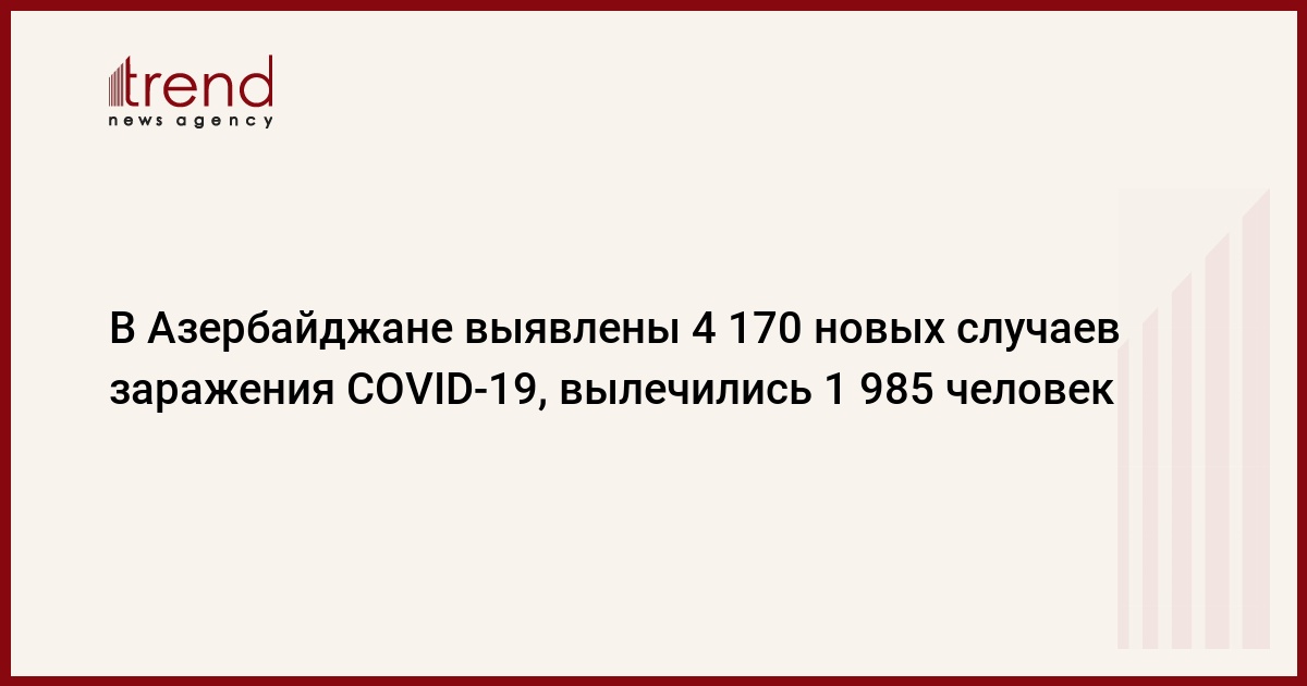 БАКУ /Trend/ - В Азербайджане за последние сутки выявлено 4 170 новых случаев инфицирования COVID-19, вылечились 1 985, скончались 38 человек, передает в воскресенье Trend со ссылкой на Оперативный штаб при Кабинете министров.