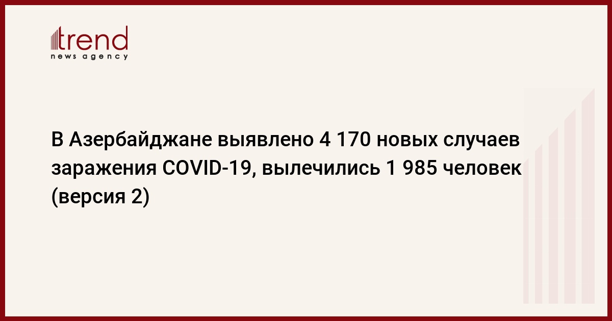 БАКУ /Trend/ - В Азербайджане за последние сутки выявлено 4 170 новых случаев инфицирования COVID-19, вылечились 1 985, скончались 38 человек, передает в воскресенье Trend со ссылкой на Оперативный штаб при Кабинете министров.