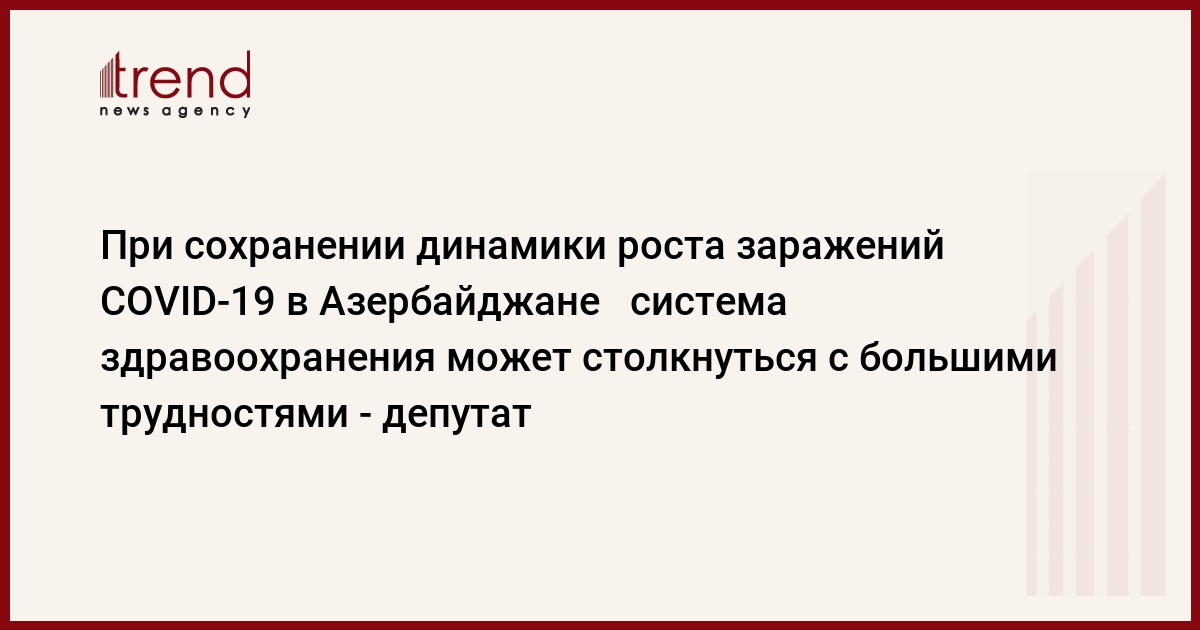 Депутат отметил, что число заражений коронавирусом в последние дни стремительно растет и в Азербайджане: "Если мы посмотрим на динамику роста за последние 15 дней, то увидим, что количество ежедневных заражений увеличилось с 2 000 до 4 200. Ежедневное число случаев летальных случаев от этого заболевания достигает почти 40 человек. Общее число активных больных составило 43 158. Если такая динамика роста заражений сохранится, наша система здравоохранения столкнется с большими трудностями. Чтобы этого не произошло, в первую очередь, каждый должен пользоваться медицинской маской, соблюдать социальную дистанцию, пользоваться дезинфицирующими средствами. В противном случае правительство будет вынуждено вновь ужесточить карантинные меры. Чтобы этого не произошло, мы должны вести себя более ответственно для достижения эффективных результатов в борьбе с коронавирусом. Лозунг "Мы сильны вместе" актуален сегодня как никогда. Мы можем победить в этой борьбе, если продемонстрируем солидарность и единство", - сказал Бадамов.