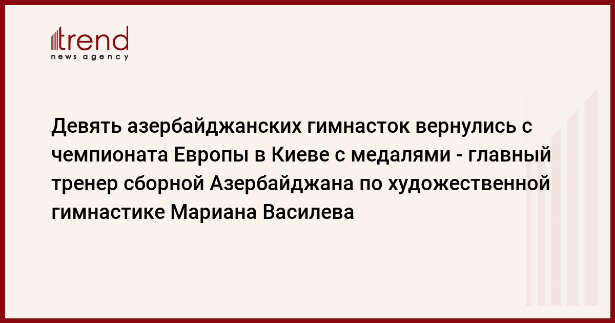 БАКУ /Trend/ - Девять азербайджанских гимнасток вернулись с 36-го чемпионата Европы по художественной гимнастике в Киеве с медалями.