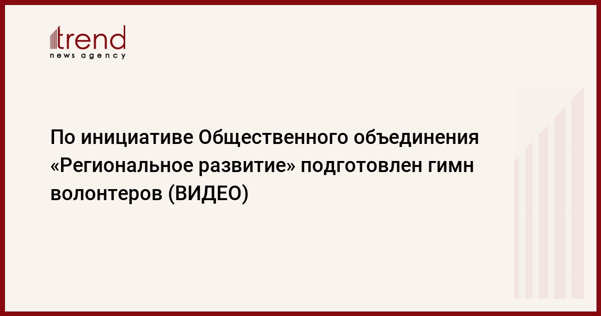 С целью вклада в «Год волонтеров», поощрения солидарности молодежи и активного участия в социально-общественной жизни страны Общественным объединением «Региональное развитие» (ООРР) подготовлен гимн волонтеров.