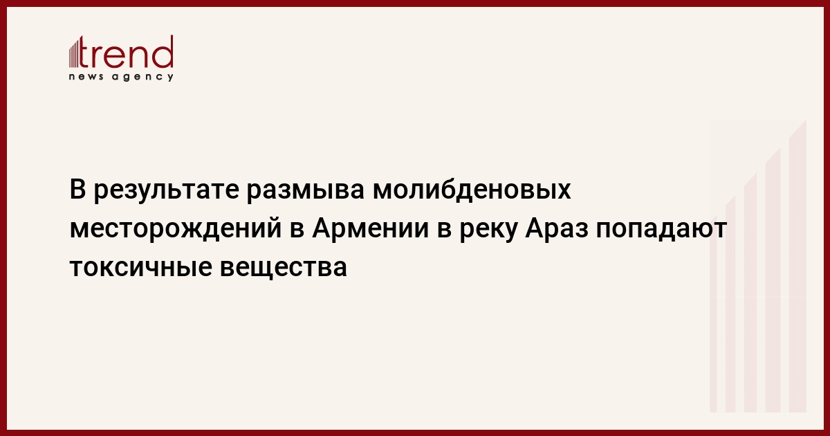 БАКУ /Trend/ - Вследствие размыва молибденовых месторождений в северо-западной части Мегринского района Армении в реку Араз попадают токсичные вещества.