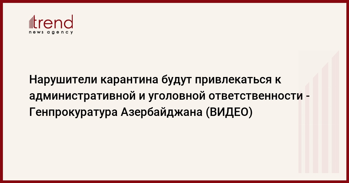БАКУ /Trend/ - Нарушители карантина будут привлекаться к административной и уголовной ответственности.