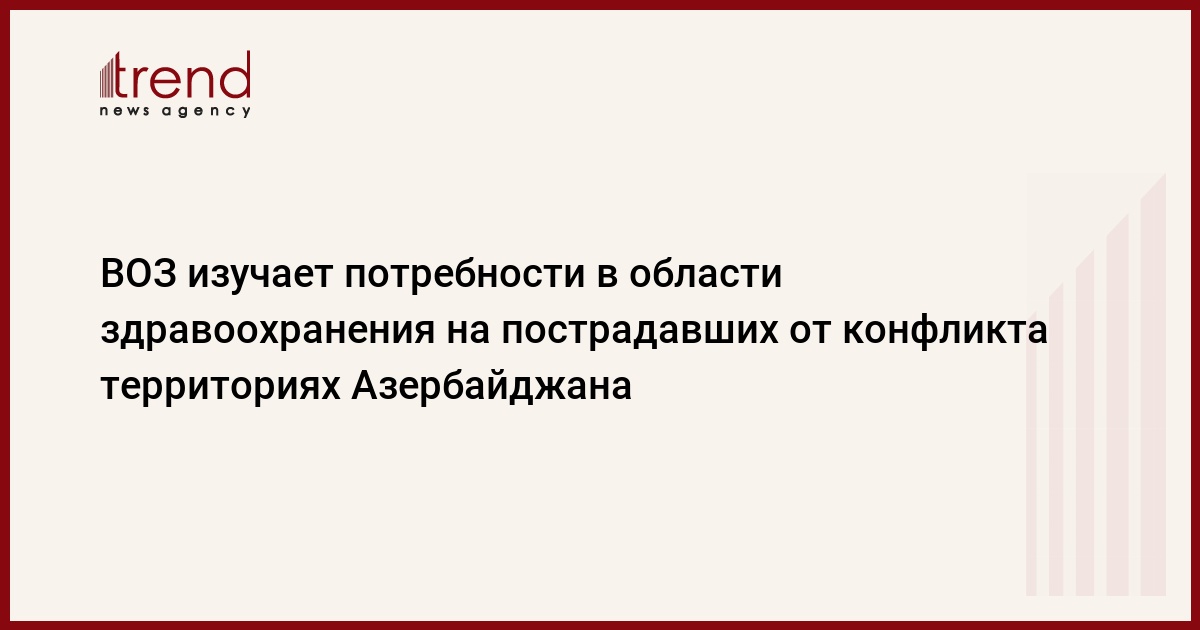БАКУ /Trend/ - Миссия Всемирной организации здравоохранения (ВОЗ) по оценке потребностей в области здравоохранения начала работу в пострадавших от конфликта регионах Азербайджана с целью изучения последствий последних военных действий для гражданского населения.