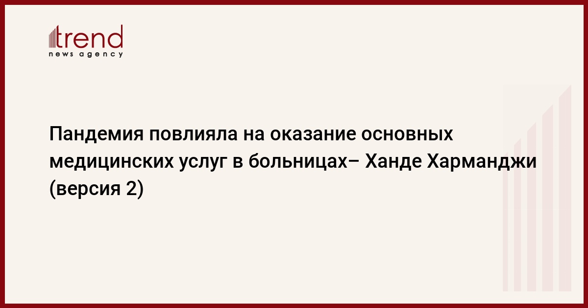 БАКУ /Trend/ - Пандемия повлияла на оказание основных медицинских услуг в больницах, в некоторых медучреждениях наблюдается нехватка медработников.