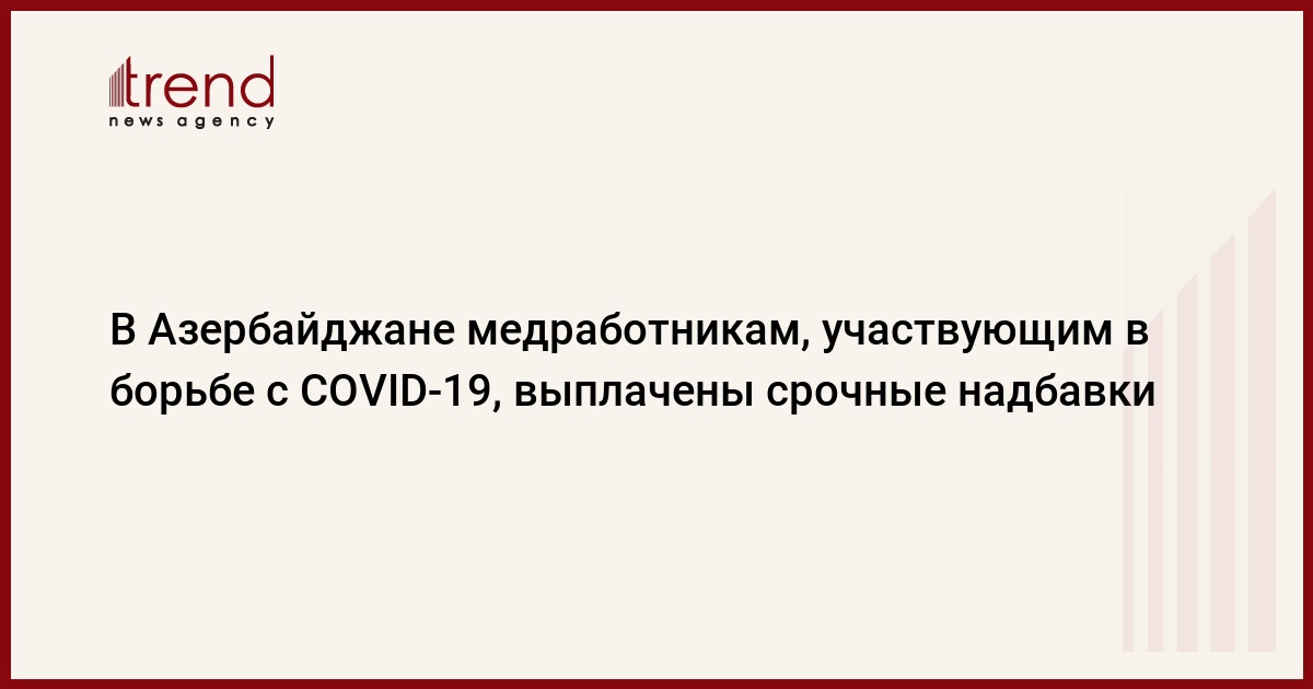 БАКУ /Trend/ - Медработникам, участвующим в осуществлении мер по борьбе с COVID-19, выплачены срочные надбавки к зарплате за ноябрь, сообщает в понедельник Trend со ссылкой на минздрав.
