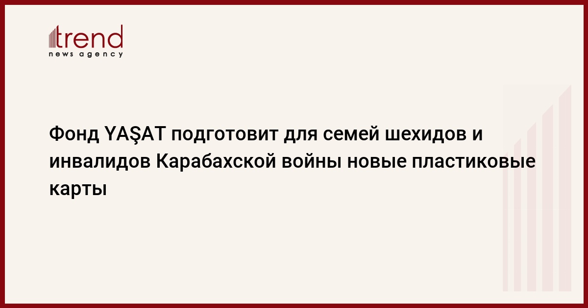 БАКУ /Trend/ - Фонд "YAŞAT" подготовит для семей шехидов и инвалидов Карабахской войны новые пластиковые карточки для льготного использования.