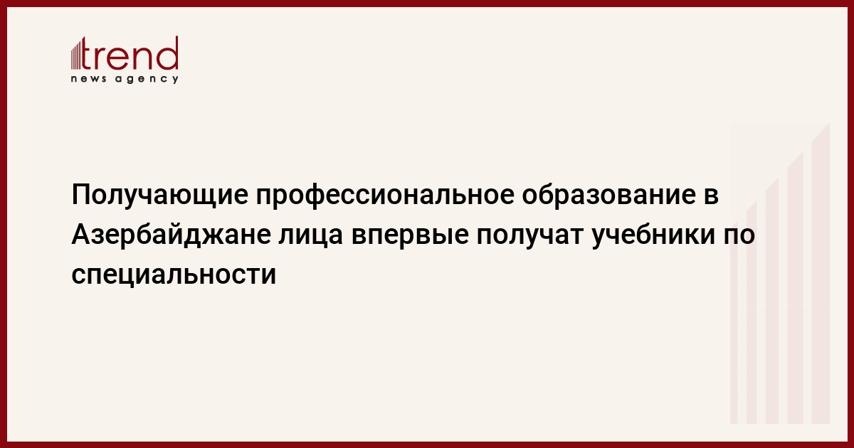 БАКУ /Trend/ - В 2020-2021 учебном году в Азербайджане введено новшество в сфере профессионального образования. Таким образом, в целях повышения качества преподавания в рамках профессионального образования впервые изданы учебники по специальностям, сообщили в среду Trend в Министерстве образования.